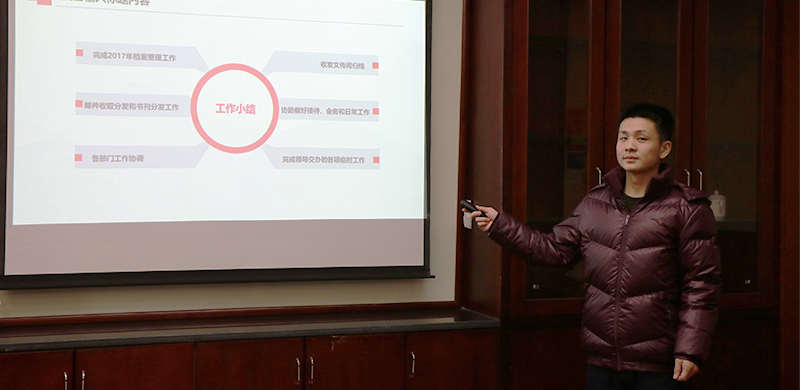 會(huì)上,陽(yáng)文林肯定了5位員工在試用期內(nèi)的表現(xiàn),并同意按期轉(zhuǎn)正。陽(yáng)文林寄語(yǔ)全體員工:“把干工作變成干事業(yè)”。
