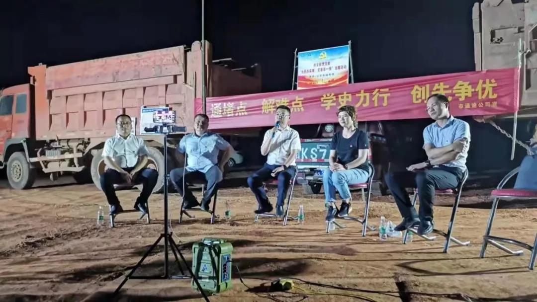 察看完項目現(xiàn)場后,已是傍晚時分。借著施工場地的燈光,支委班子在項目現(xiàn)場召開了座談會,公司其他同事通過直播的方式參加了會議。會上,通途公司負責(zé)人就“公交都市”創(chuàng)建情況做了匯報,并就項目推進中的困難提出了請求,現(xiàn)場其他與會人員分別結(jié)合自身崗位做了發(fā)言,提出了在人手、人才等方面的問題。針對大家提出的問題,支委班子及相關(guān)負責(zé)人做了詳細解答,并給出了具體方案,同時,也要求大家主動學(xué)習(xí)、加強自我培訓(xùn),根據(jù)實際情況加強外部交流,博采眾家所長,為公司以后的發(fā)展壯大貢獻自己的力量。